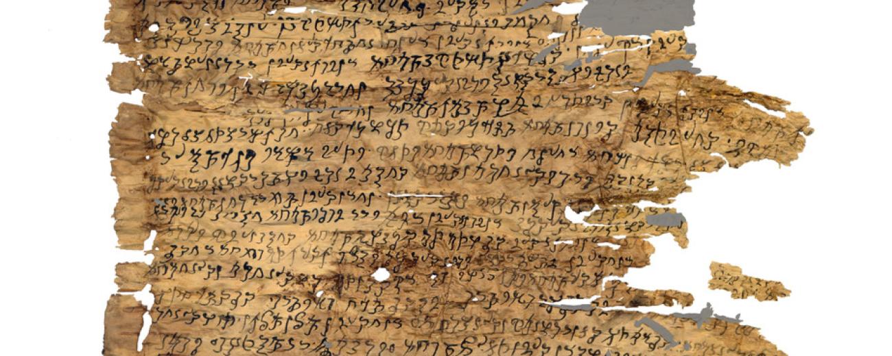Image Credit: Part of scroll no. 2 of the Bajaur Collection of Kharoṣṭhī manuscripts (BC 2). Reconstruction: Andrea Schlosser.