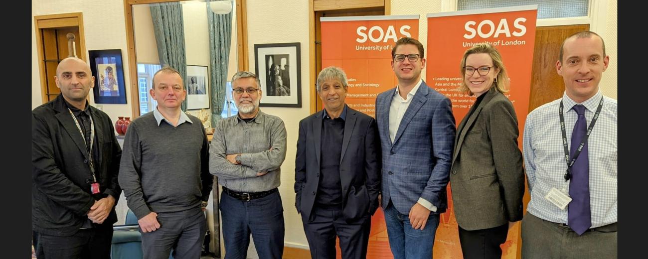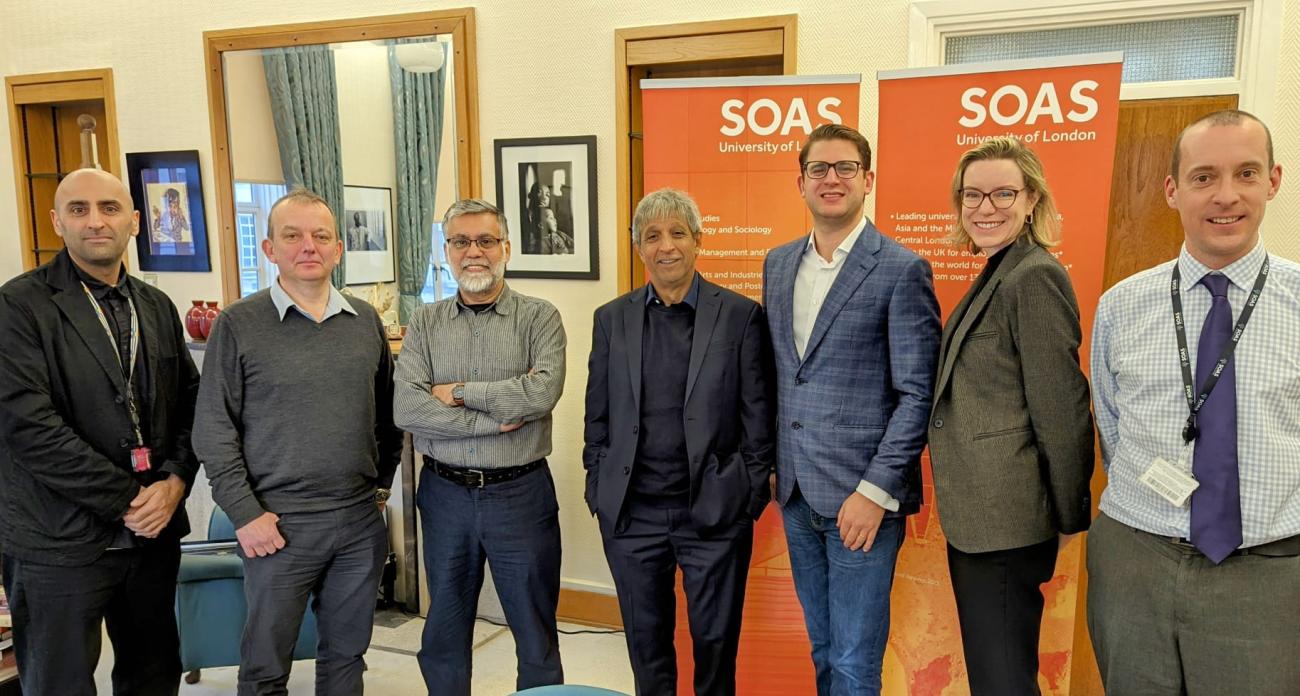 Pictured above: SOAS Director Adam Habib stands with members of staff from Shiv Nadar University and SOAS University of London.