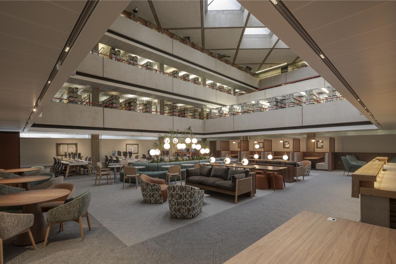 The reading room in SOAS’s historical grade II listed brutalist Library building has undergone a major refurbishment to create a revitalised learning space for students.